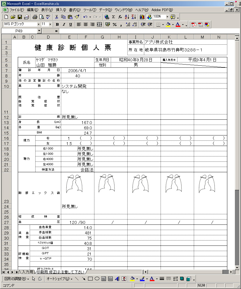 ご使用方法は、簡単です。1つのExcelファイルが、一人の受診者専用ファイルとしてご利用ください。