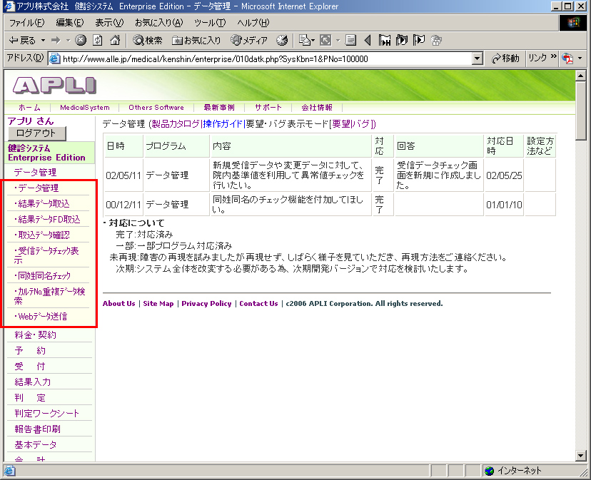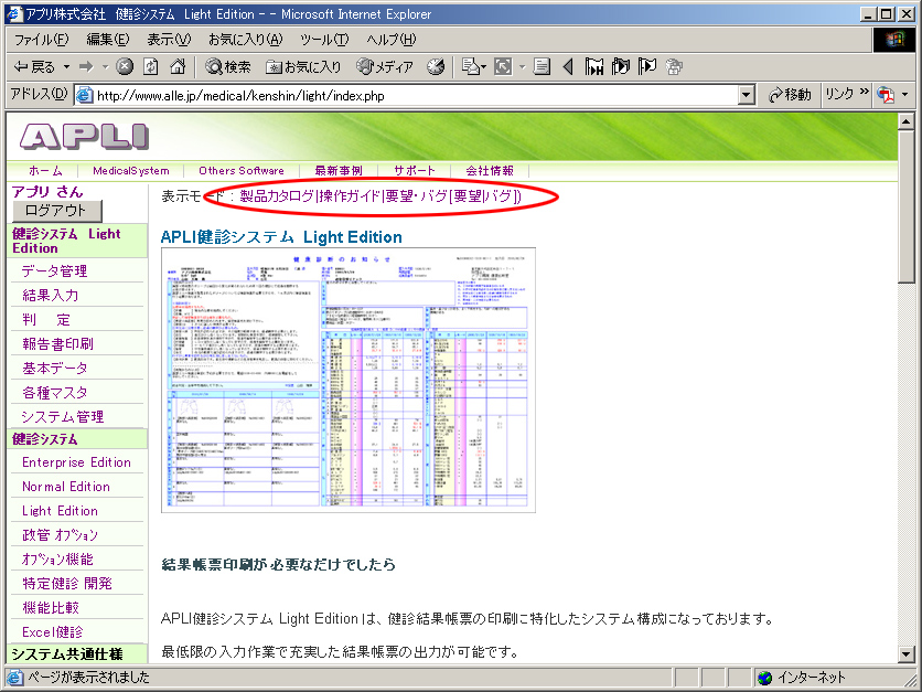 弊社ホームページは、導入後のサポート機能を優先に設計した結果、画面左側メニューの動作が、解りにくくなっております。